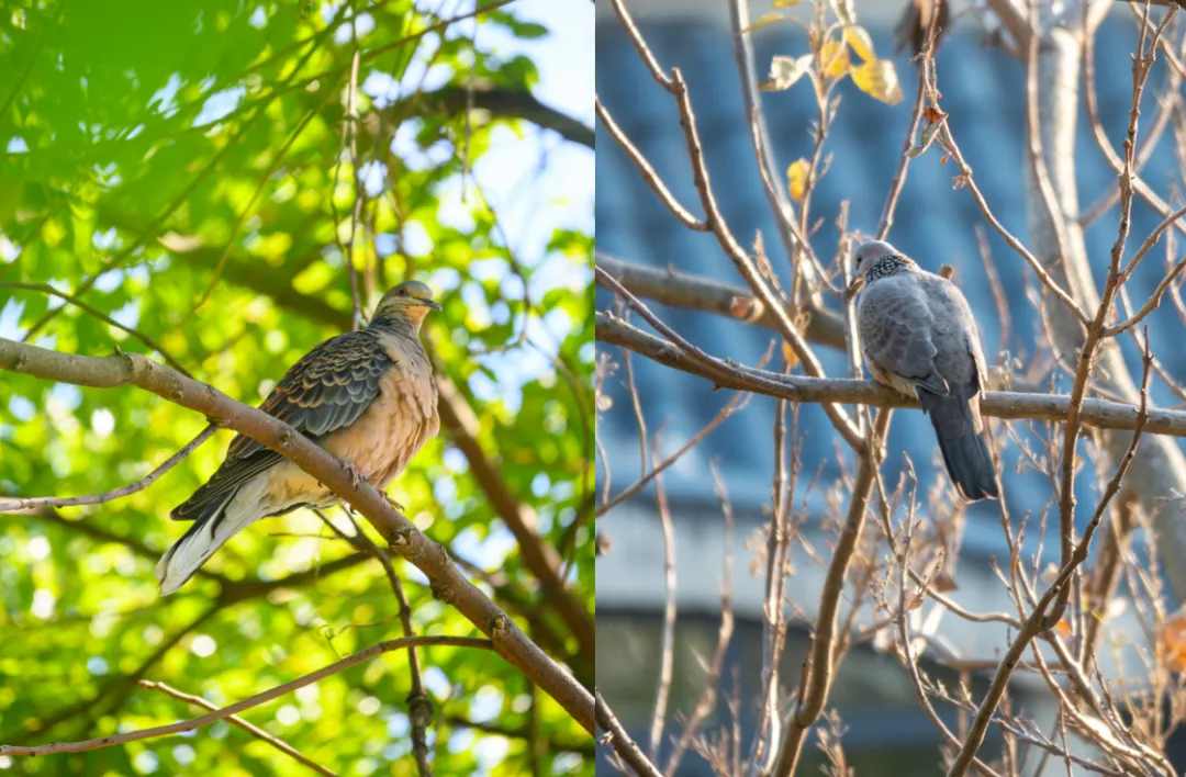 ▲山斑鸠(左)和珠颈斑鸠(右)