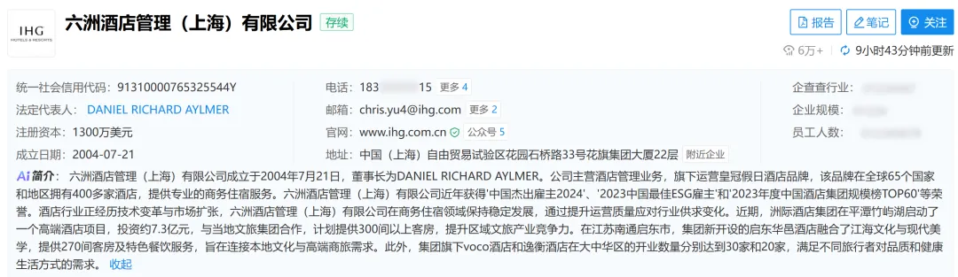 通过查询,六洲酒店管理(上海)有限公司成立于2004年7月21日,董事长为DANIEL RICHARD AYLMER。公司主营酒店管理业务,旗下运营皇冠假日酒店品牌,该品牌在全球65个国家和地区拥有400多家酒店,提供专业的商务住宿服务。其中六洲酒店管理(上海)有限公司还在近年获得'中国杰出雇主2024'、'2023中国最佳ESG雇主'和'2023年度中国酒店集团规模榜TOP60'等荣誉。酒店行业正经历技术变革与市场扩张,六洲酒店管理(上海)有限公司在商务住宿领域保持稳定发展,通过提升运营质量应对行业供求变化。近期,洲际酒店集团在平潭竹屿湖启动了一个高端酒店项目,投资约7.3亿元,与当地文旅集团合作,计划提供300间以上客房,提升区域文旅产业竞争力。在江苏南通启东市,集团新开设的启东华邑酒店融合了江海文化与现代美学,提供270间客房及特色餐饮服务,旨在连接本地文化与高端商旅需求。此外,集团旗下voco酒店和逸衡酒店在大中华区的开业数量分别达到30家和20家,满足不同旅行者对品质和健康生活方式的需求。此次中标公示,也确定了滕王阁景区南扩配套项目酒店将引入IHG旗下品牌,也标志着全球知名酒店集团洲际(IHG)正式入驻滕王阁片区,未来开业后也将极大程度提升南昌旅游配套接待能级。从相关信息看,地块位于东湖区沿江中大道东南侧、新洲路以西(CY101-A02地块) ,地块面积47.751亩,土地用途为商服用地-旅馆用地,地块容积率0.8,建筑密度40% ,绿地率≥25%。从设计方案看,项目总建筑面积41023平方米,其中客房15849平方米,客房数203套,功能含客房、餐饮、宴会、康养休闲娱乐、大堂、设备用房等,项目整体风格延续了滕王阁建筑群风貌,主入口位于南侧,北侧区域还设计有大面积水系。