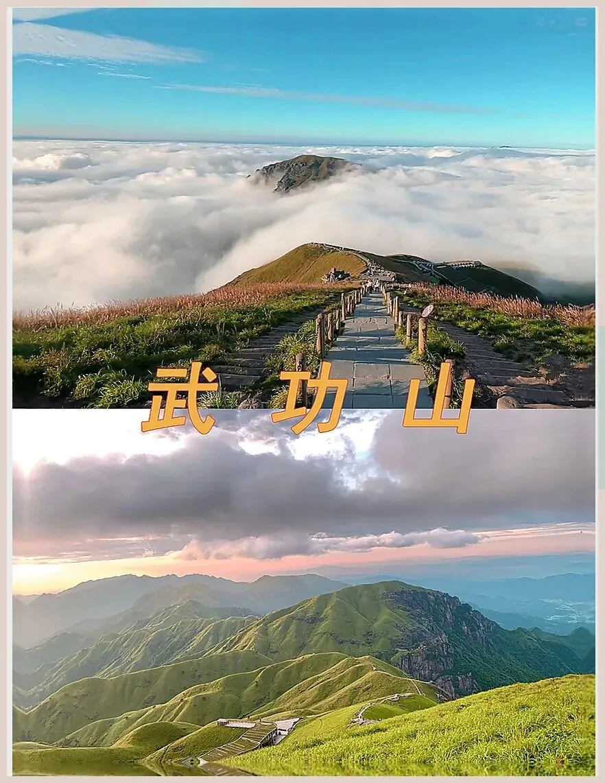 我站在石阶上,风裹着雾吹过来,头发湿了,衣服沾着凉。突然不想拍照了,把相机塞进包里。风穿过草甸的声音,像谁在低声说话。原来风景不用装进口袋,记在心里就好——雾里的武功山,像蒙着纱的姑娘,看不清全貌,却更有味道。