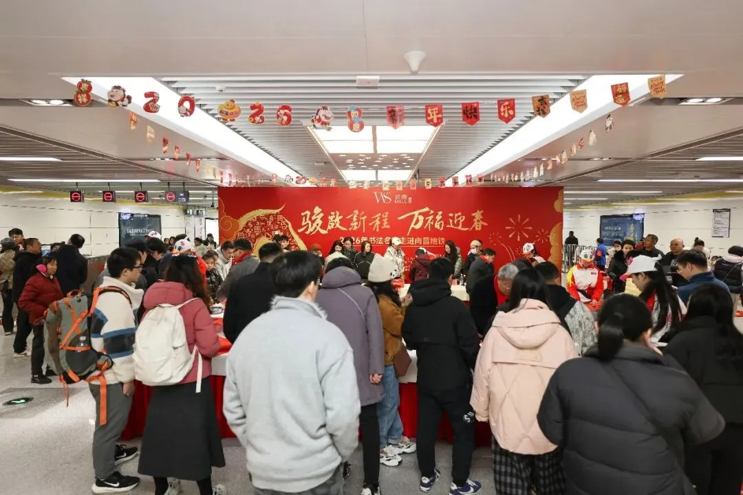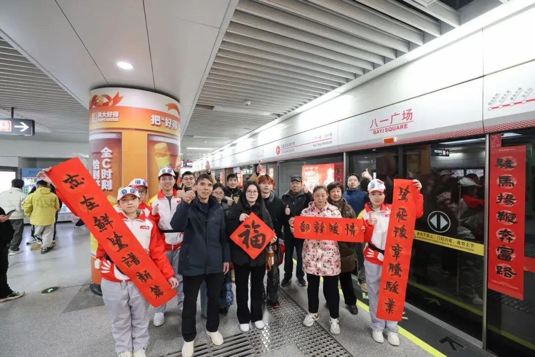 今日,“骏启新程 万福迎春——2026年书法名家走进南昌地铁”活动在南昌地铁2号线八一广场站举行。走进八一广场站、地铁大厦站、昌北机场站、南昌西站等核心站点,一幅幅名家手写春联已跃然于屏蔽门之上,浓郁的节日氛围扑面而来,为匆忙的旅途增添一抹暖意。这场马年新春前的文化盛宴,以笔墨为媒、以地铁空间为舞台,将新春祝福深情传递,为市民提前呈上一份充满人文关怀的新年贺礼。