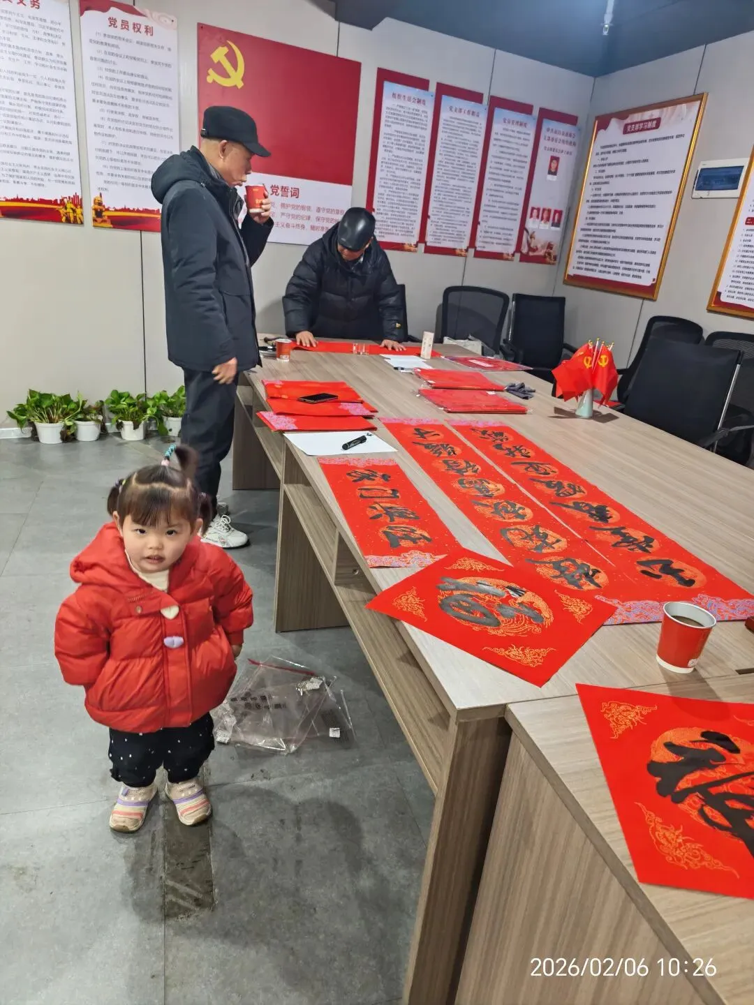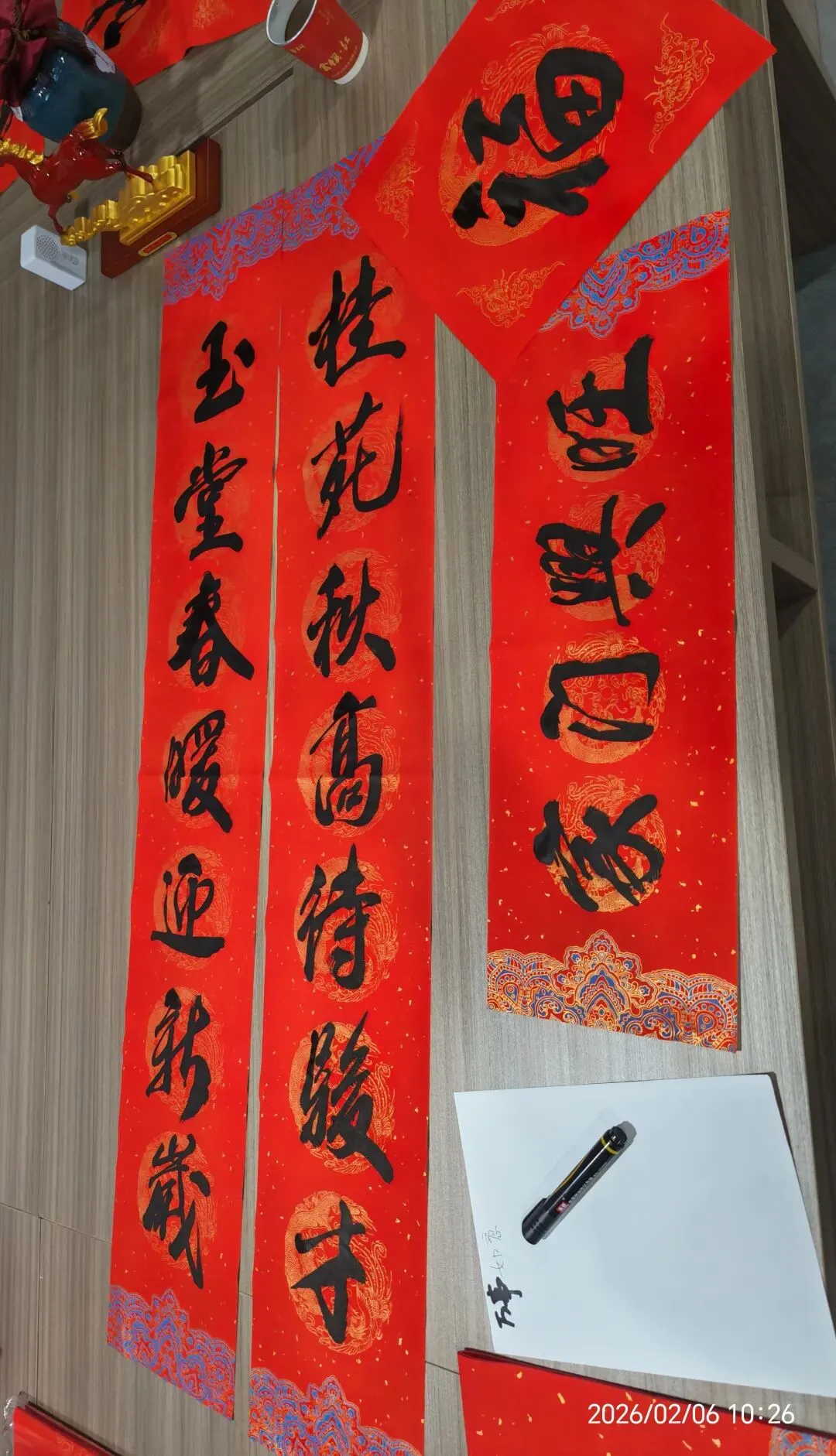 活动现场暖意融融、墨香四溢。商会特邀洪国荣老师现场挥毫泼墨,笔走龙蛇间,一副副寓意吉祥、格调雅致的春联跃然红纸之上。“策马扬鞭奔锦绣,凝心聚力创辉煌”“春到西湖添瑞气,福临金溪启新程”……既有贴合马年生肖的奋进祝语,也有适配商户经营、家庭安康的美好祈愿,楷书端庄、行书灵动,每一幅作品都饱含着对新春的期盼与对商会同仁的祝福。