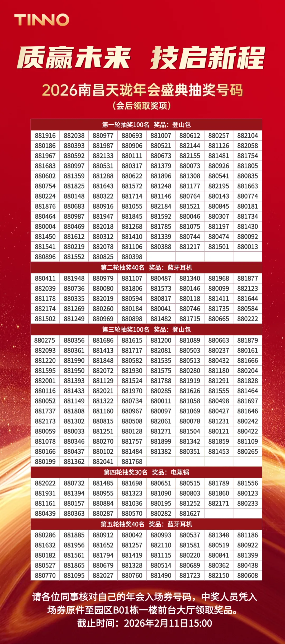 2026南昌天珑年会中奖号码