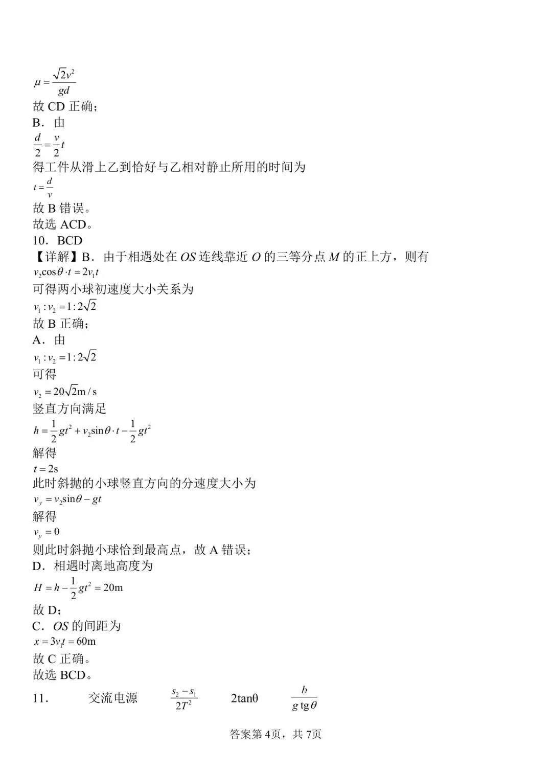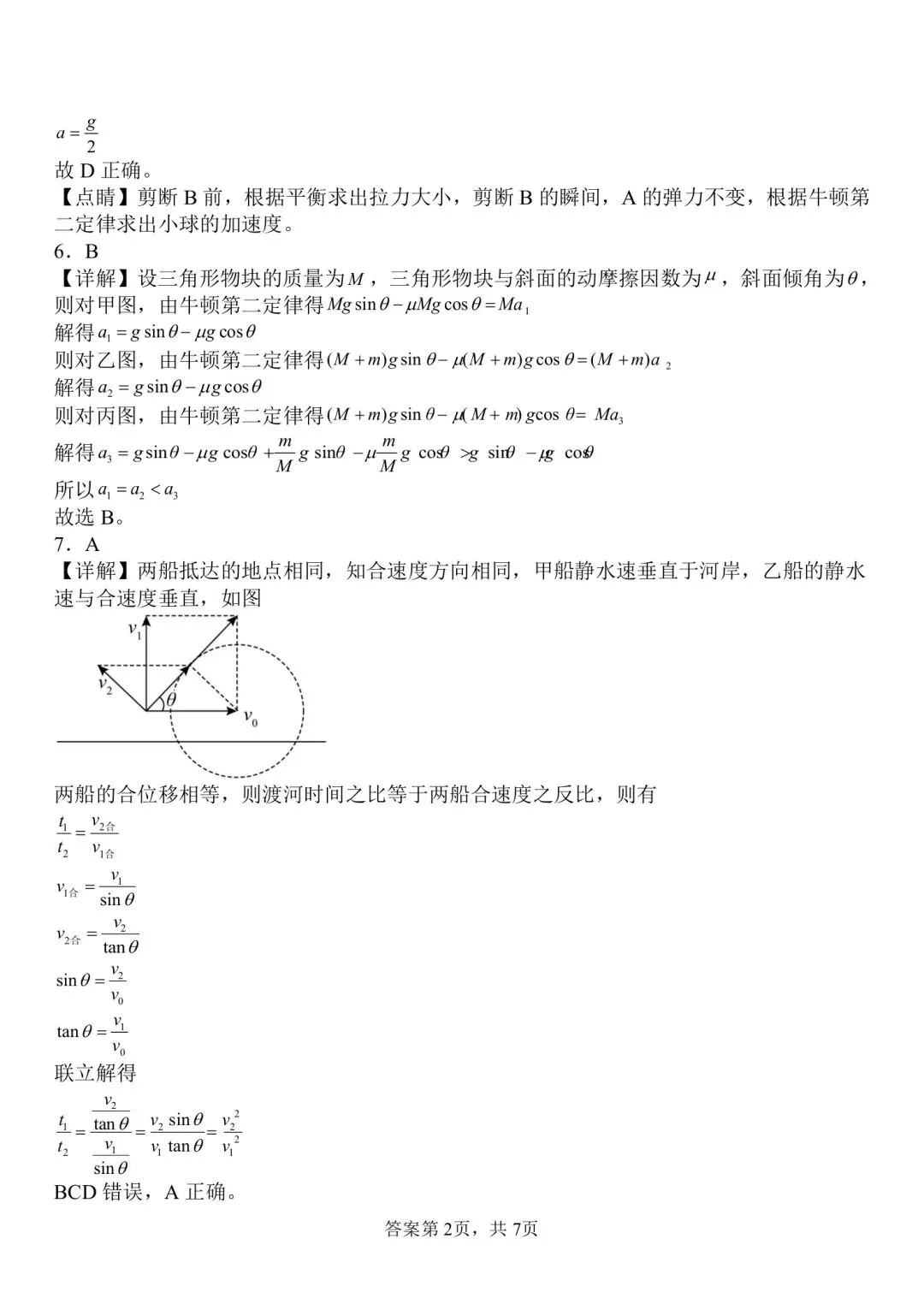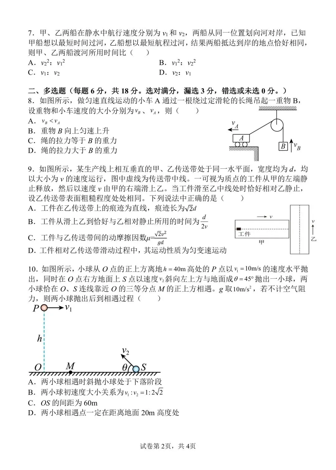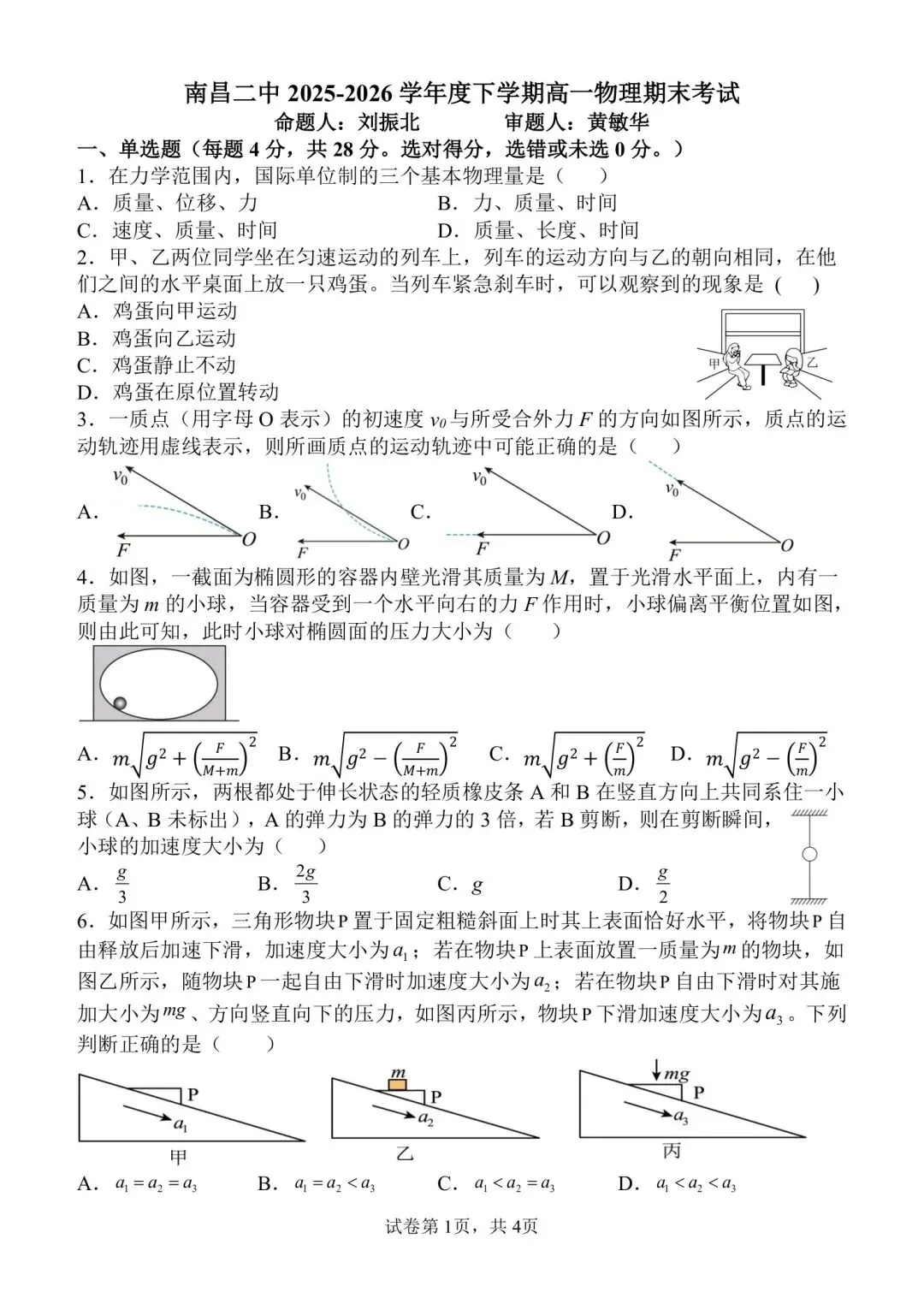 南昌二中高一期末物理试卷解析
