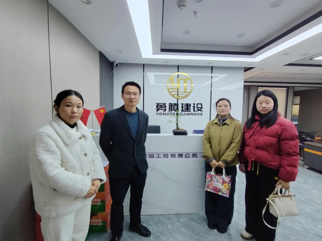 谢玲平老师带领许晓云、吴霞走访江西勇腾建设工程有限公司,与企业负责人就施工类岗位的技能要求进行深入交流,明确了软件应用能力和职业资格证书在就业中的重要性。