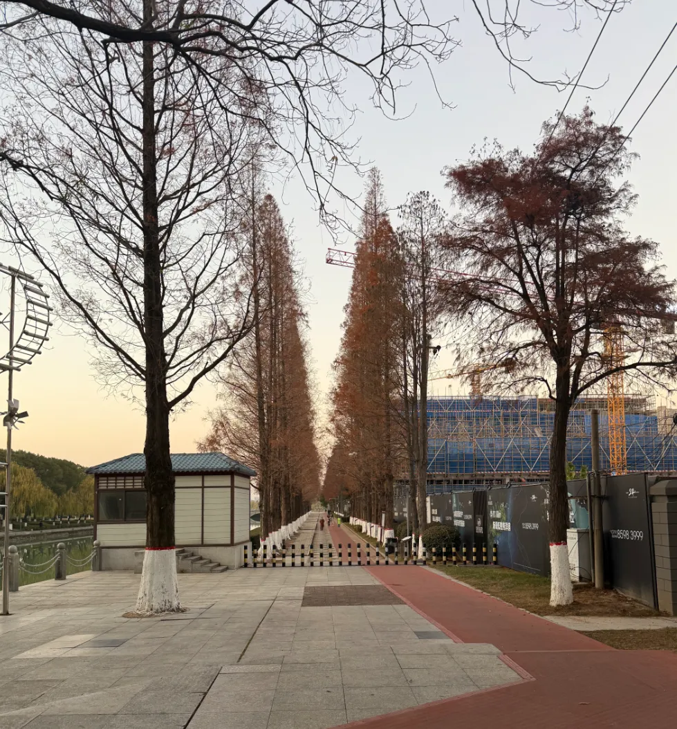 当我看到澄碧湖最东面的一排水杉,步道上仅限行人通过,而在步道旁边,就是这个项目的围挡。