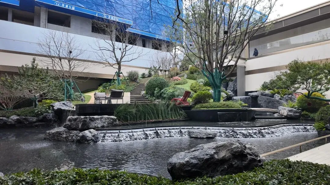 但不同的是,它打造的是南昌首个这种坡地式飞瀑的下沉庭院。