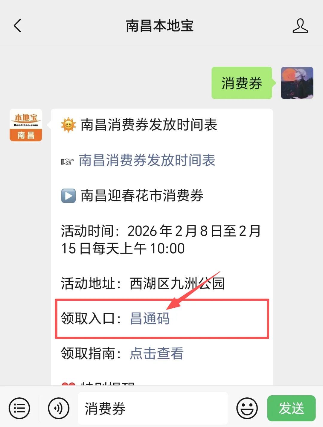 发送【消费券】可获南昌消费券发放时间