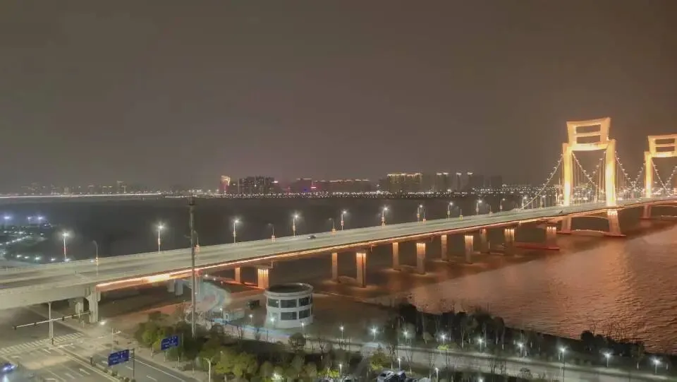 夜幕降临,洪州大桥如金色巨龙横卧赣江之上。晚风拂过江面,粼粼波光与两岸灯火交相辉映,这是独属于南昌的浪漫与温柔