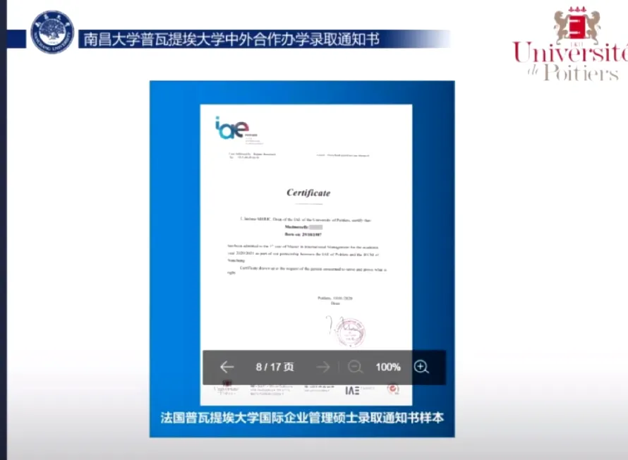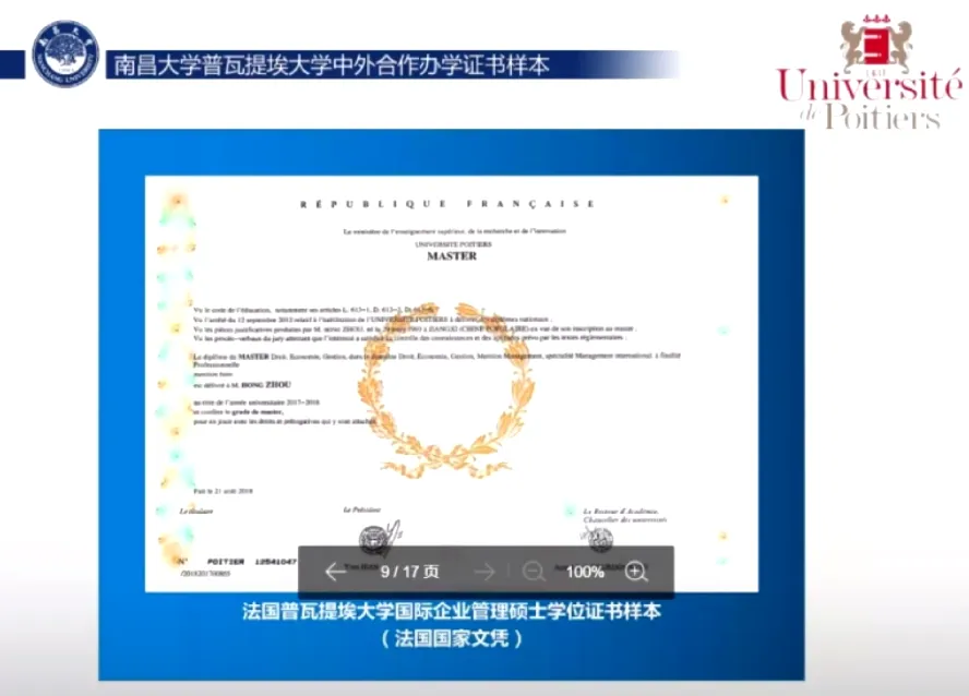 南昌大学与法国普瓦提合办2+0硕士“企业管理””碳中和