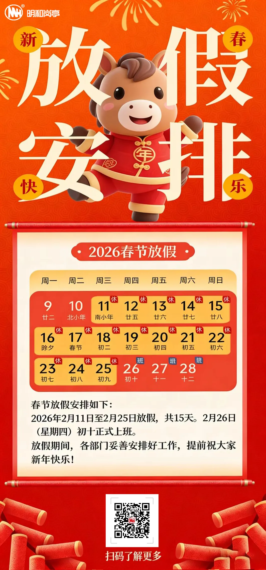 南昌明和有限公司2026春节放假|策马迎新,平安过年