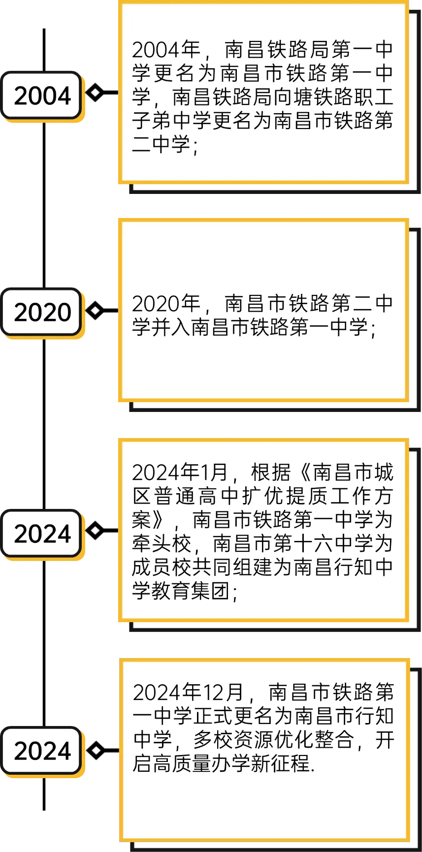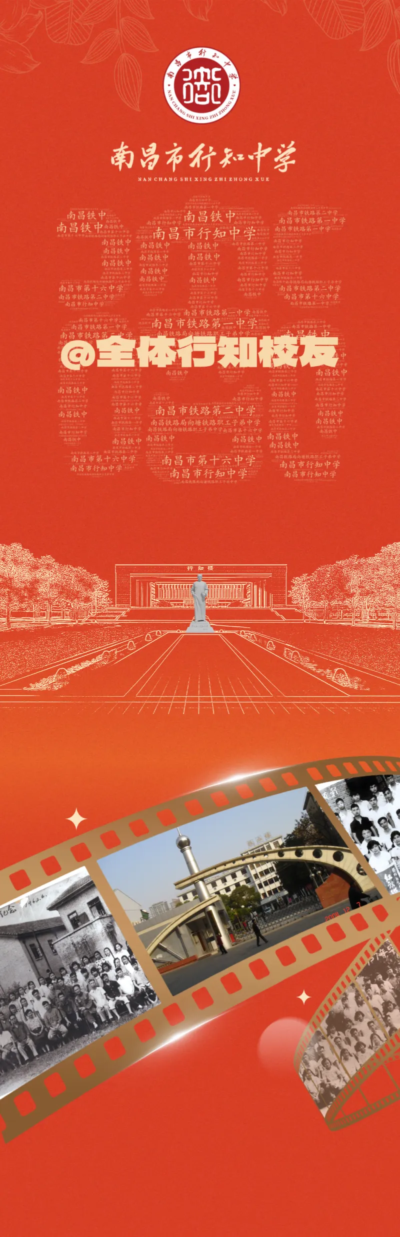 南昌市行知中学前身为南昌市铁路第一中学,办学底蕴深厚,文脉绵延,其发展历程凝聚多校积淀,包括南昌市铁路第一中学、南昌市第十六中学、南昌市铁路第二中学。具体脉络为: