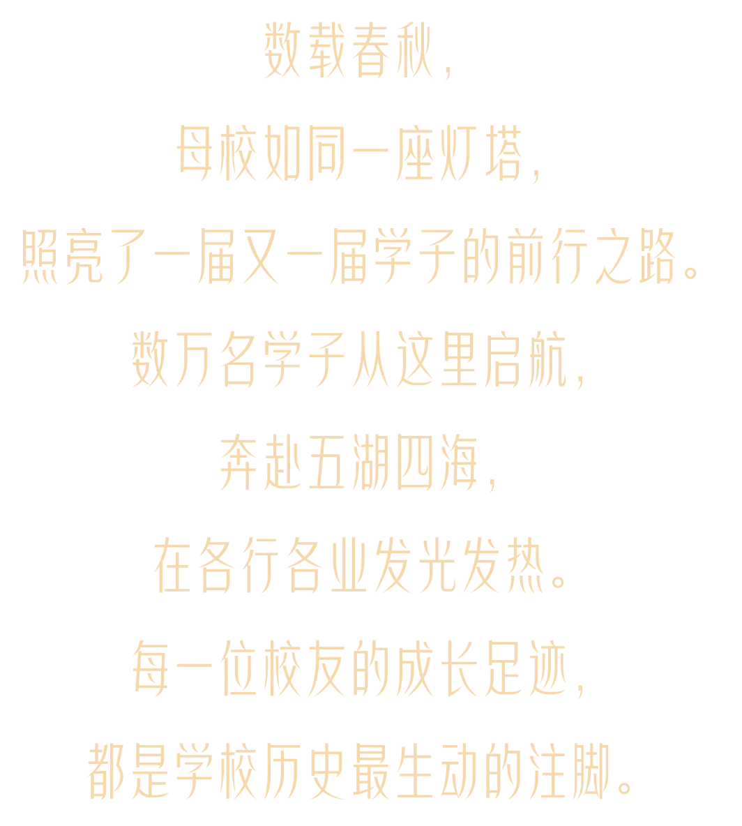 如今,您或许已肩负重任,在职场中砥砺前行;或许正漫步在学术殿堂,探索未知的边界;又或许在生活的烟火里坚守初心,温柔而坚定地生活。但无论您身处何方,从事何种职业,母校始终以您为荣,时刻牵挂您的成长。