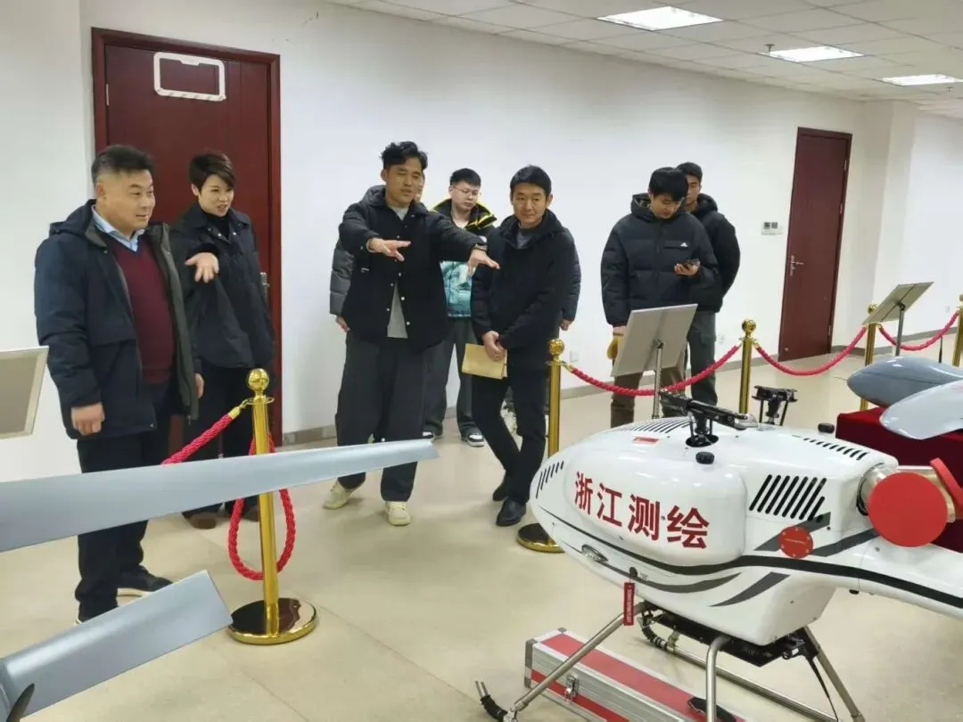 在杭州,一行人走访了浙江省测绘科学技术研究院——该单位是浙江省自然资源厅直属的公益二类事业单位,由7家机构整合组建而成,兼具测绘科研与实践服务职能。据悉,该单位现有9名体育学院航模专项校友在岗履职,为单位发展注入力量。座谈交流中,双方围绕校友职业发展、校企人才对接等话题深入沟通,马明辉代表学院为在岗校友送上定制纪念品,传递母校与学院的关怀与问候,随后一行人共同参观了测绘博物馆及无人机作业展厅,直观了解单位业务范畴与发展实力。
