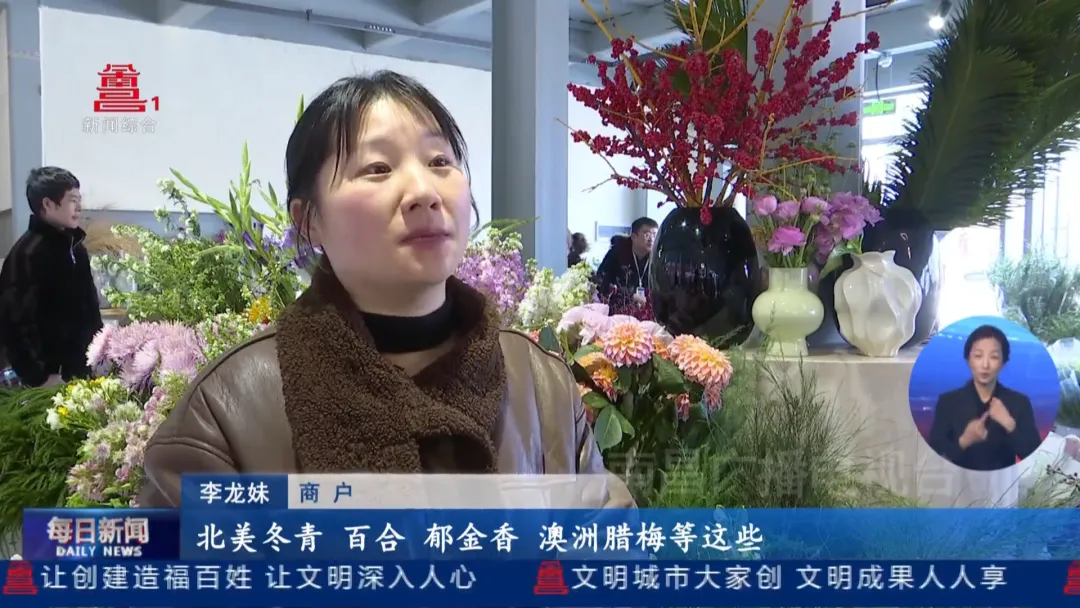 商户李龙妹:“北美冬青、百合、郁金香、澳洲腊梅等这些,都卖得特别好,我们现在备货比以往多备了两三倍以上,像我们的营业额以往都是几千,现在每天营业额可能达到两万以上,现在人气特别多,特别旺盛。每天都到货,外面都堆满了。”