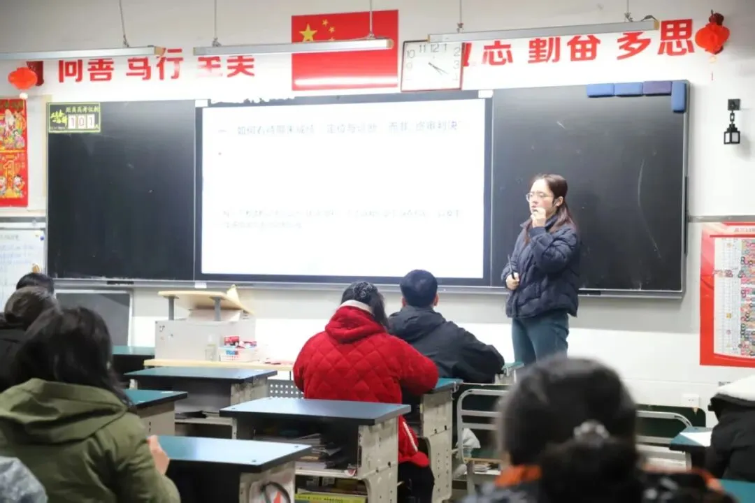 随后各班进入分场交流,班主任们组织家长观看《亲子连心,从“会沟通”开始》家庭教育讲座,让家长习得高效亲子沟通方法。班主任还全面总结班级学期情况,回顾了老师们和家长们的付出,分析学生成长亮点与不足,明确寒假学习要求,并着重开展假期安全教育。各科任老师纷纷走进班级,结合学科特点分析学生学习表现,分享学科学法指导,助力家长精准帮扶孩子度过假期。