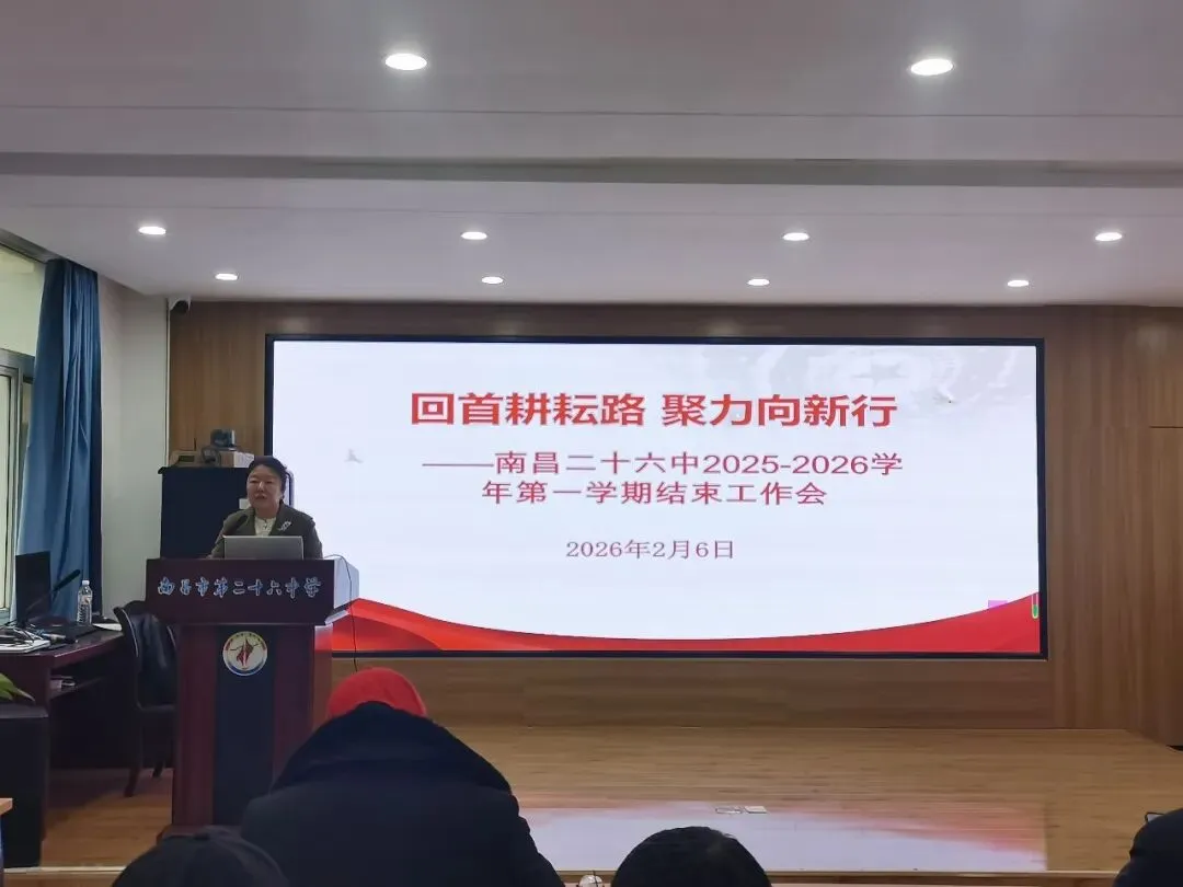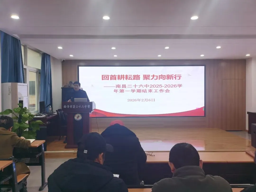 岁序常易,华章日新;耕耘不辍,步履铿锵。2月6日下午,南昌市第二十六中学隆重召开2025-2026学年第一学期结束工作会,会议由梅承芳校长主持,全体教工齐聚一堂,回望一学期的耕耘足迹,凝聚奋进新力量,共绘发展新蓝图。