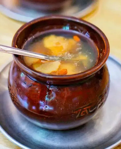 瓦罐汤选店门口瓦罐冒热气的,汤色清亮不浑,猪肚鸡比排骨莲藕更稳,天气热的中午喝完不犯困。