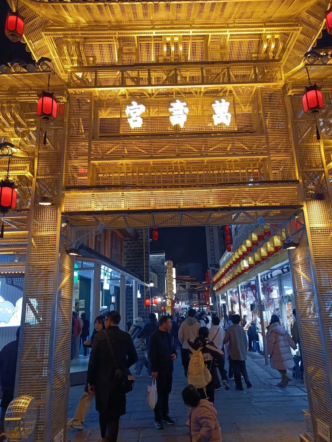 晚上,我们又到万寿宫游玩。有了朦胧的夜色,有了如梦似幻的灯光,这个白天看起来“不过如此”的历史文化街区,有了几分迷人。庄重神秘的铁柱万寿宫,穿着国潮的年轻丽人,让你犹如穿越到了千年前大宋的元夕。流光溢彩的屋檐下,各色小吃飘香;铺着青石板的巷子里,人流摩肩接踵;古风古韵的店铺里,文创美轮美奂。还有一个网红,在二楼的窗前蒙着轻纱演奏二胡,引得女儿和众多游人驻足引颈观看。这个女网红的演奏水平并不能引起我和妻子的兴趣,我们便坐在附近的小凳子上等演出结束。快9点了,演出才在热闹的音乐声中结束。见天色不早,我们没去看滕王阁夜景就打的回酒店。