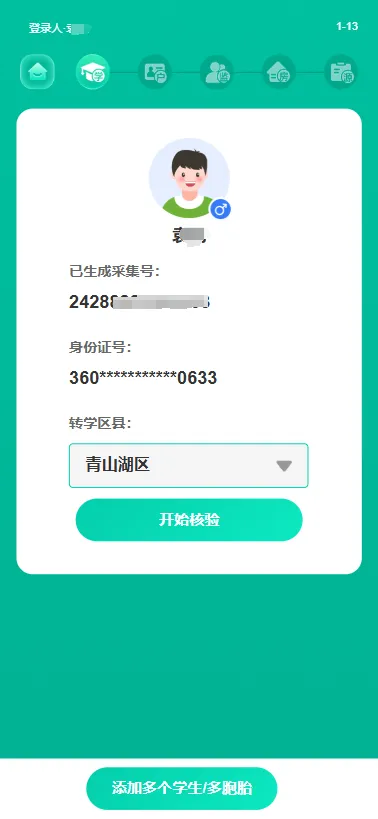 步骤说明:(1)默认按照初始选择区县进入核验(区县可进行切换),点击“开始核验”;