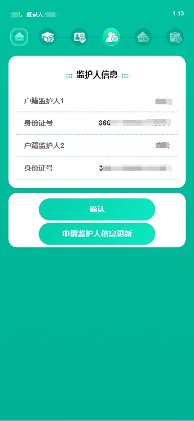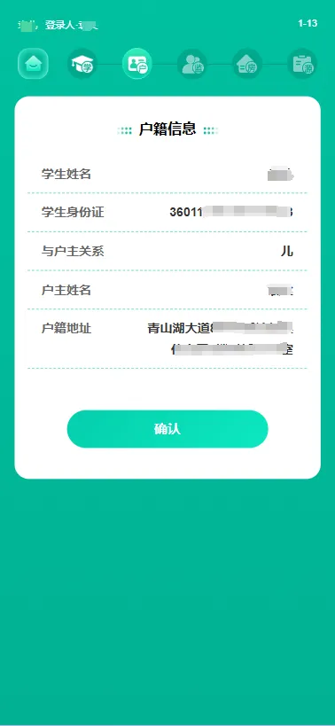 步骤说明:核实户籍信息无误点击“确认”;核实监护人信息无误点击“确认”。