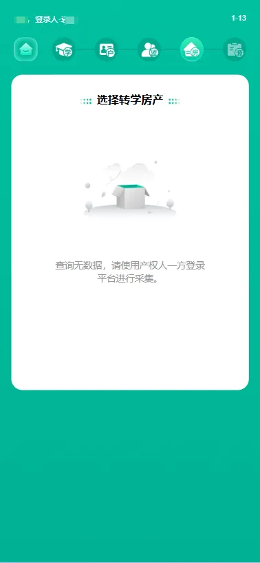 注意:若登录人非产权人,将提示“查询无数据,请使用产权人一方登录平台进行采集。”