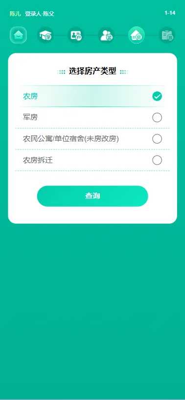 (2) 转学房产类型选择“农房”,点击“查询”。核对无误后点击“确认使用”。