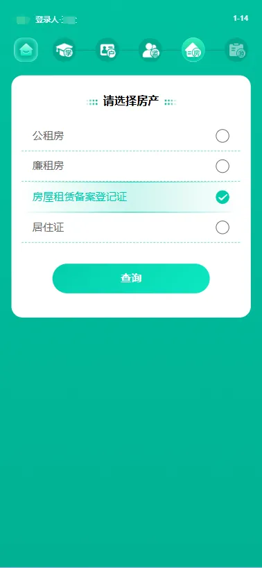 (1) 监护人在选择转学材料页面,选择“使用居住证、房屋租赁备案登记证、公租房、廉租房”。