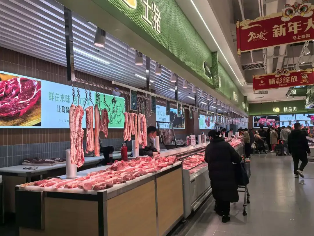 超市蛮大的,转了一圈,里边的东西还是挺全面的。大型超市该有的东西都有,入口处是烘焙,什么水产海鲜、鸡鸭牛羊肉、水彩水果、面点熟食各种分区都有。