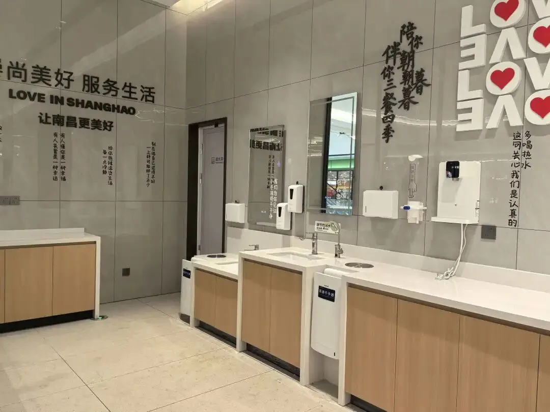 还有专门一个区域是超市的贴心服务,有洗手池、饮水机、烘干机等。