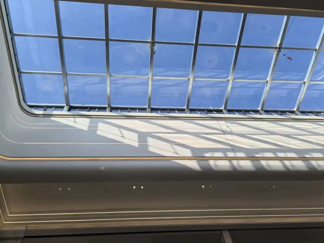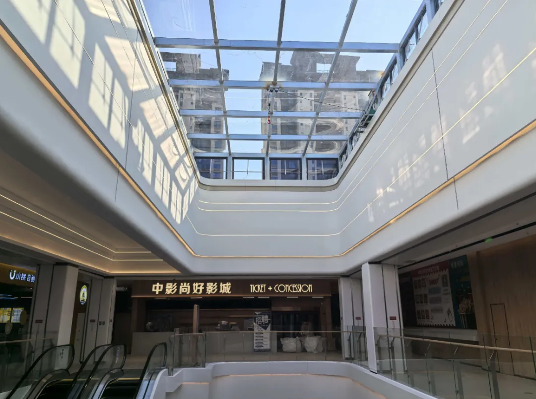 虽然是盒子商业,但是四周并不是完全封闭式的,还是做了一些玻璃透光,可以看到外边的蓝天,冬天还能晒晒太阳。