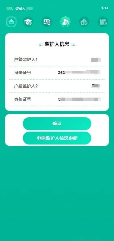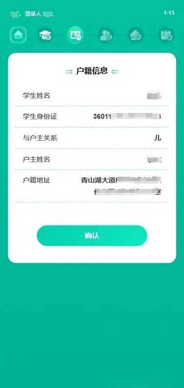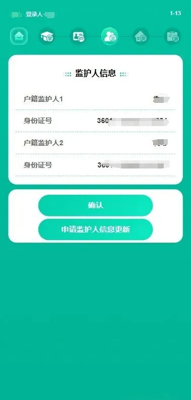 步骤说明:核实户籍信息无误点击“确认”;核实监护人信息无误点击“确认”。