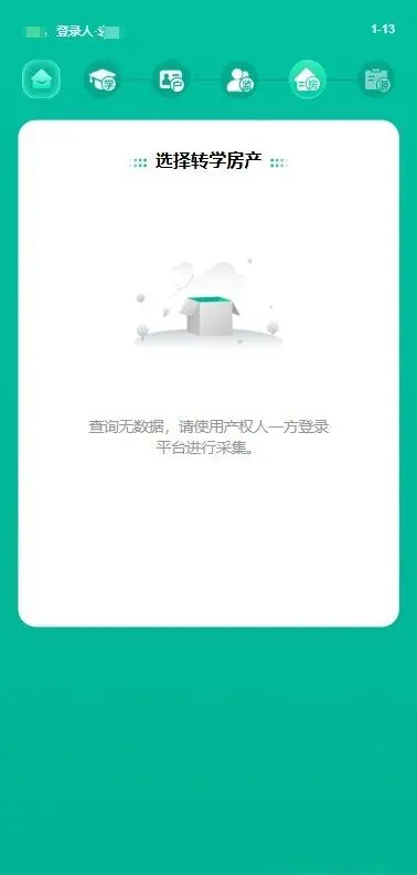 注意:若登录人非产权人,将提示“查询无数据,请使用产权人一方登录平台进行采集。”