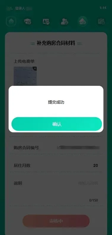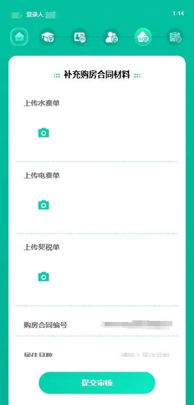 (3) 补充购房合同材料,上传相关材料,核对无误后点击“提交审核”;