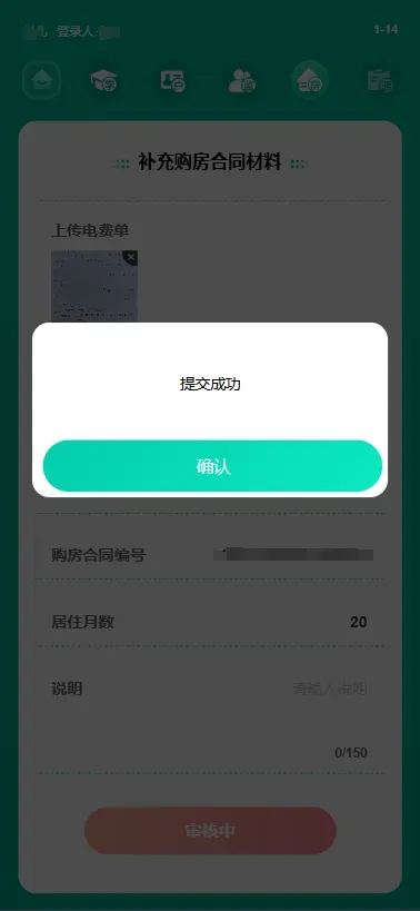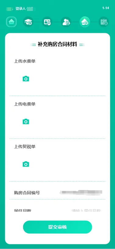 (3)补充购房合同材料,上传相关材料,核对无误后点击“提交审核”;