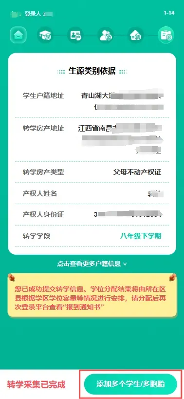 (3) 转学采集已完成,等待区县进行审核。