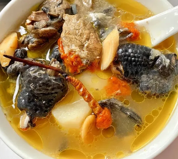 不是那种饲料催出来的肉,而是真正满山跑的泰和乌鸡。皮薄、骨黑、肉嫩。中午随便找家农家乐,点一锅乌鸡汤,汤色清亮,油花不多,一口下去,鲜味直接往天灵盖上窜,整个人瞬间就暖和了。