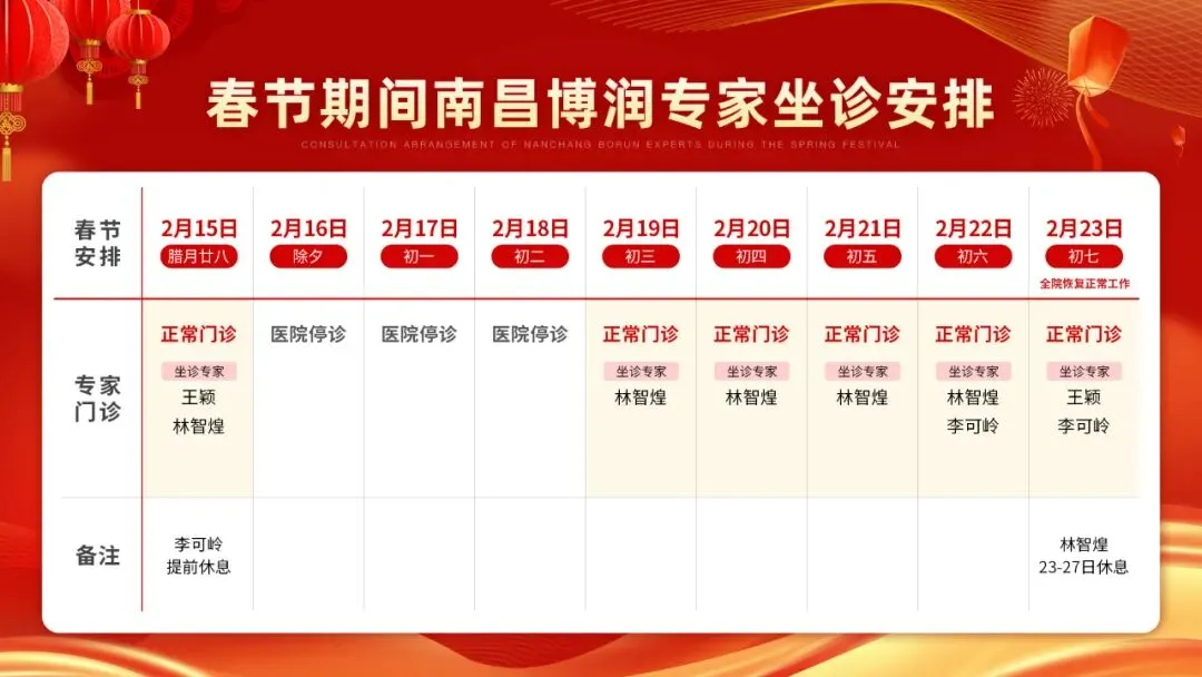 ①2月15日、2月19日-2月23日照常接诊,2月16-2月18日停诊