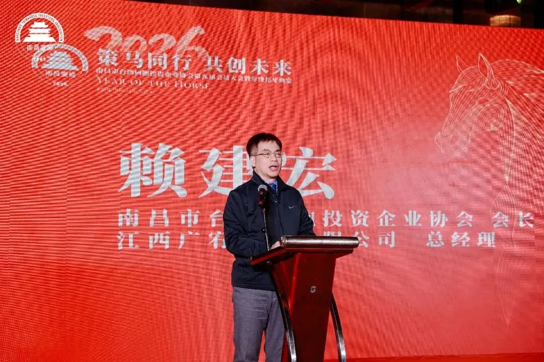 赖建宏在致辞中回顾了过去一年台商在复杂形势下深耕南昌、逆势而上的奋斗历程,感谢市台办及各级政府提供的“保姆式”服务。他对协会发展提出三点期望:一是坚持底线思维,加强合规经营,健全风险管理体系,确保企业行稳致远。二是主动融入大局,加大科技创新和产业升级力度,在电子信息、智能制造等重点领域争做排头兵。三是发挥桥梁作用,积极宣传推介南昌,吸引更多台湾青年来昌发展,为深化两岸融合发展贡献力量。