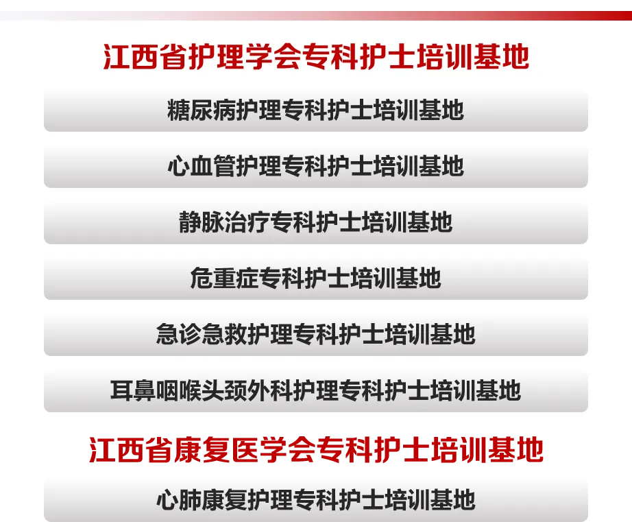 南昌大学第二附属医院护理学为江西省临床重点专科,拥有1个国际、2个国家级、7个省级专科护士临床培训基地,15个省级专科护士临床实习基地,3个中华护理学会京外临床教学基地,6个中华护理学会京外临床教学建设基地;2021年我院获批国际麻醉护理联盟(IFNA)培训基地,属全省首家。2023年中国医院科技量值排名,护理学位列全国第61位,创造江西省历年最佳排名。
