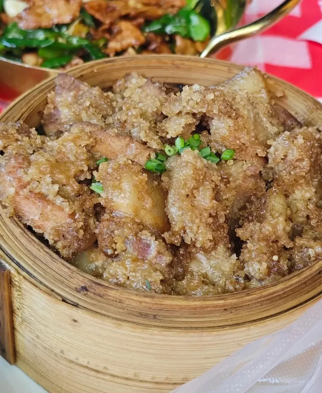 打开蒸笼的那一刻,香味扑鼻。肉片酥烂,入口即化,肥而不腻,米粉则油润可口。