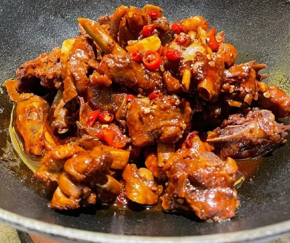 做这道菜,鸭子是灵魂。南昌的老饕们挑鸭子,讲究用养足一年的老麻鸭,肉质紧实,鸭香浓郁。鸭子处理干净后,要先焯水锁鲜,再下锅煸炒至金黄出油。最关键的一步来了:倒入一整瓶啤酒代替水来炖煮。麦芽的香气和淡淡的苦味,能完美去除鸭肉的腥膻,并增添一种独特的醇厚风味。