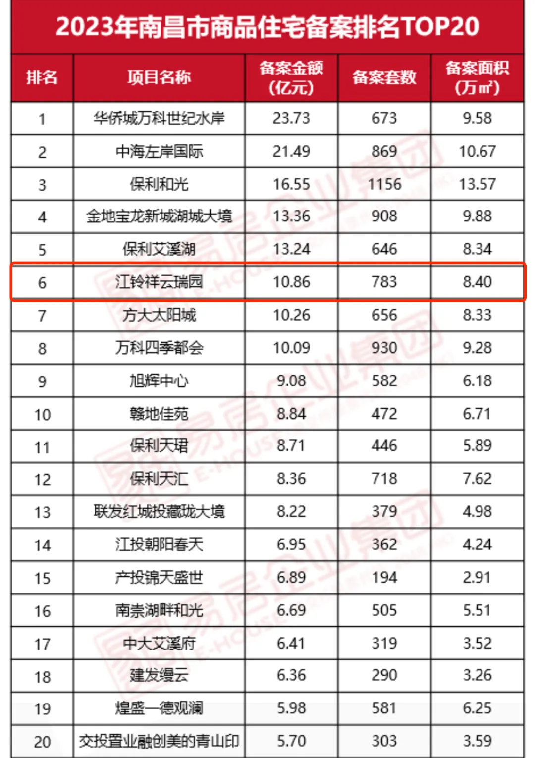 2023年项目以783套、10.86亿元的成绩数据,位列南昌销售榜第六。