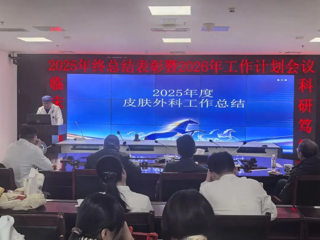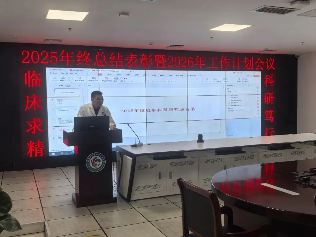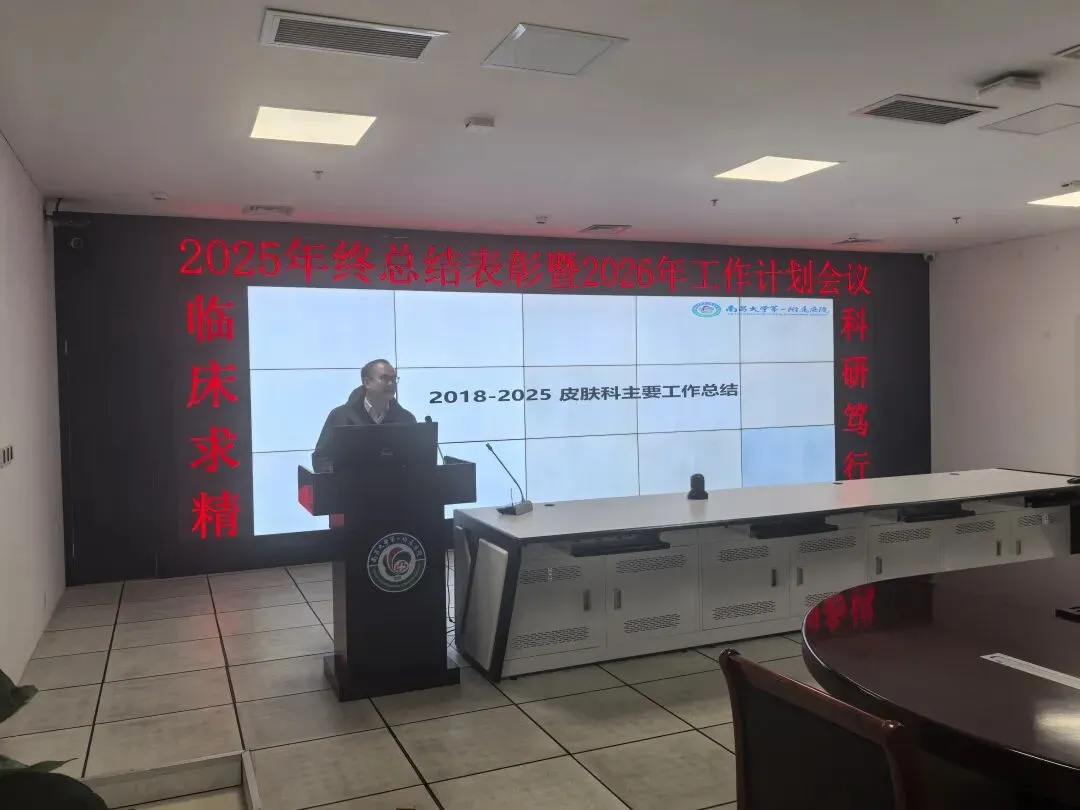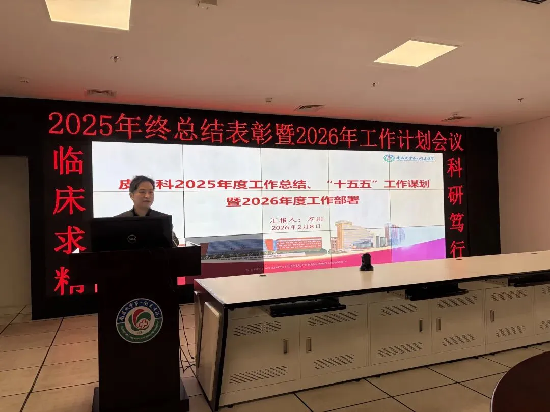 以匠心守初心,以实干赴使命。2月8日下午,南昌大学第一附属医院皮肤科2025年度总结表彰大会暨2026年度工作计划大会在象湖院区门诊应急指挥中心顺利召开。科室全体医护人员参会,会议全面复盘2025年学科建设成果,总结各板块专项工作,并系统部署2026年重点任务,为学科高质量发展谋篇布局。