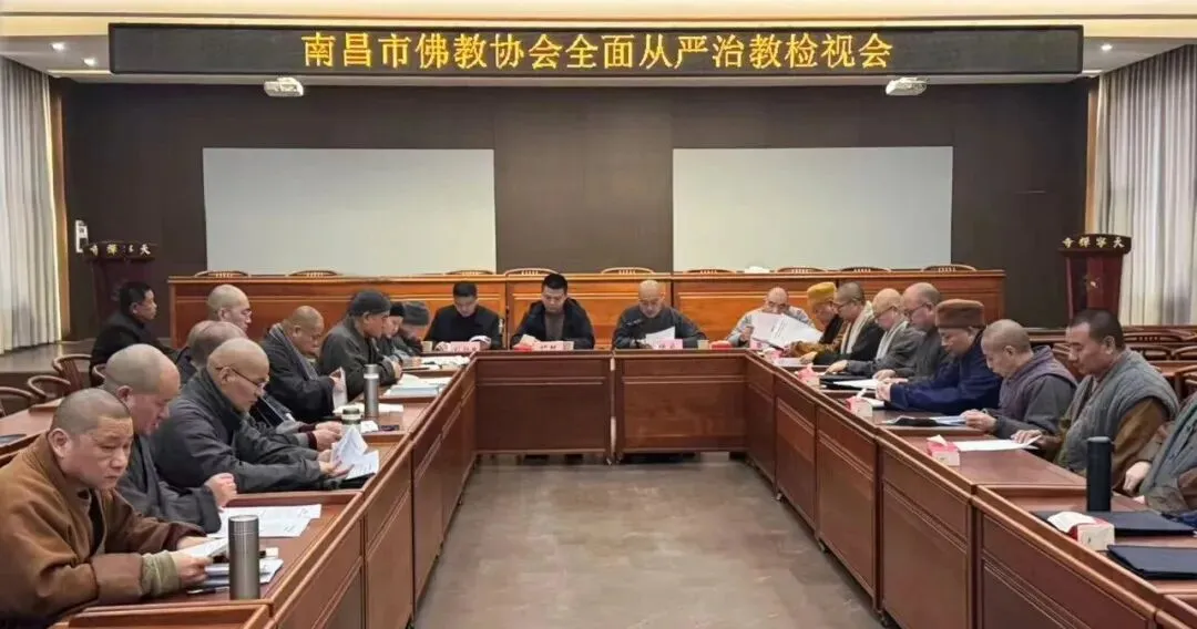 2026年1月28日,南昌市佛教协会召开从严治教检视会暨班子成员述职和民主评议会,市民族宗教事务局相关处室负责人应邀莅会。常务理事、教风委员会成员及部分信众代表参会。