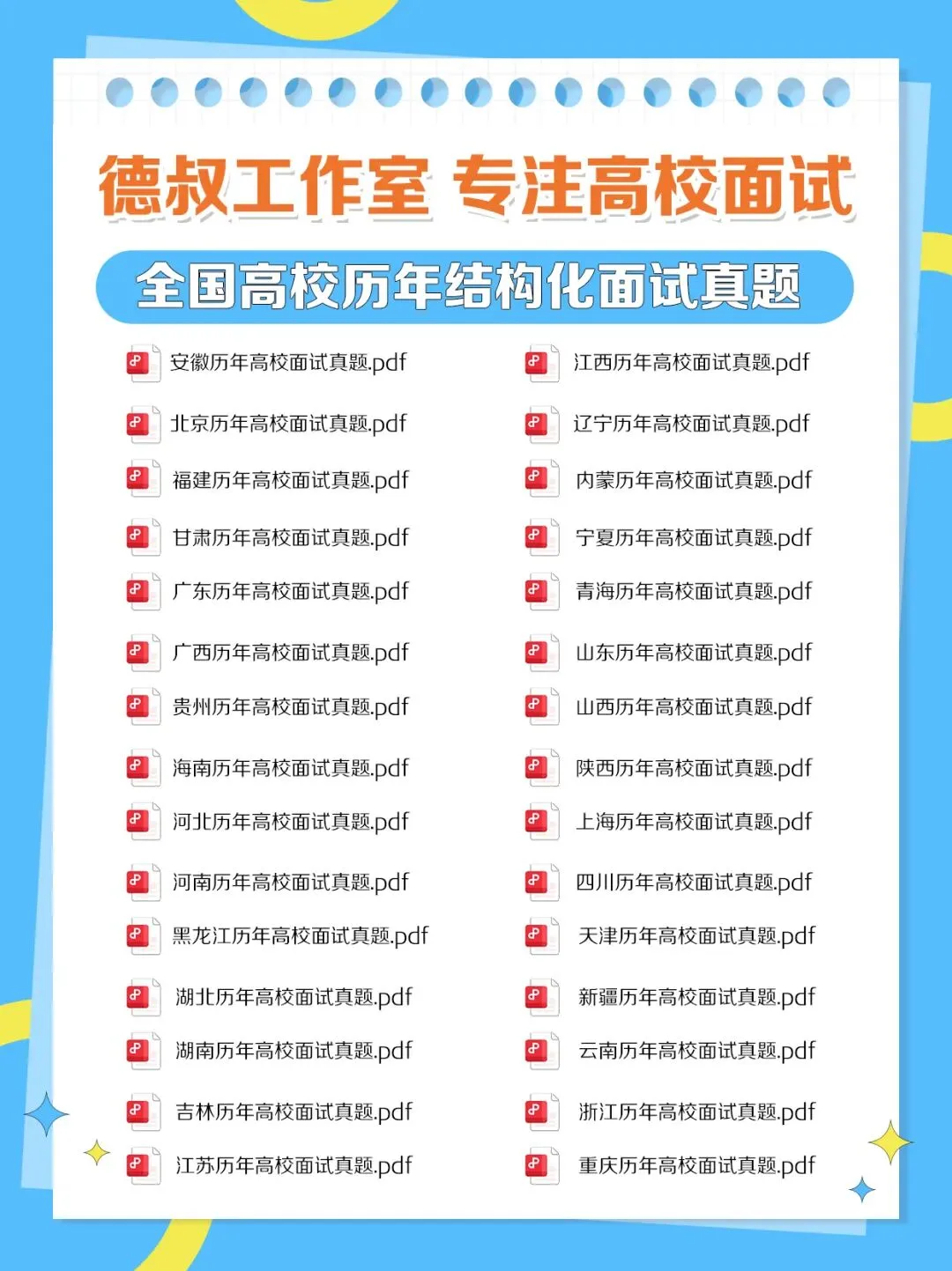 各省高校结构化面试真题免费领取