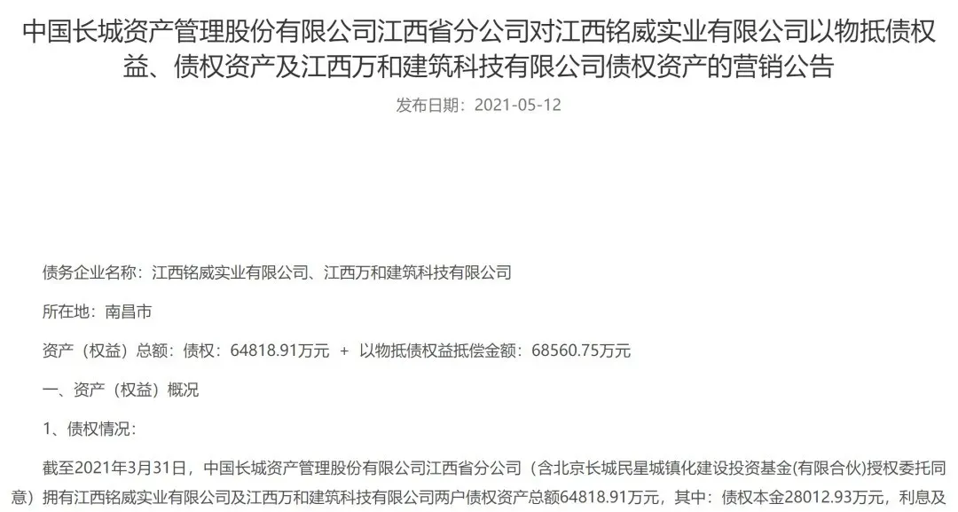 遗憾的是,6次挂牌均流拍,甚至无人报名,南昌可能没有比这还惨的项目了,最后这个项目还是留在了债权处置方中国长城资产管理股份有限公司江西省分公司手上。
