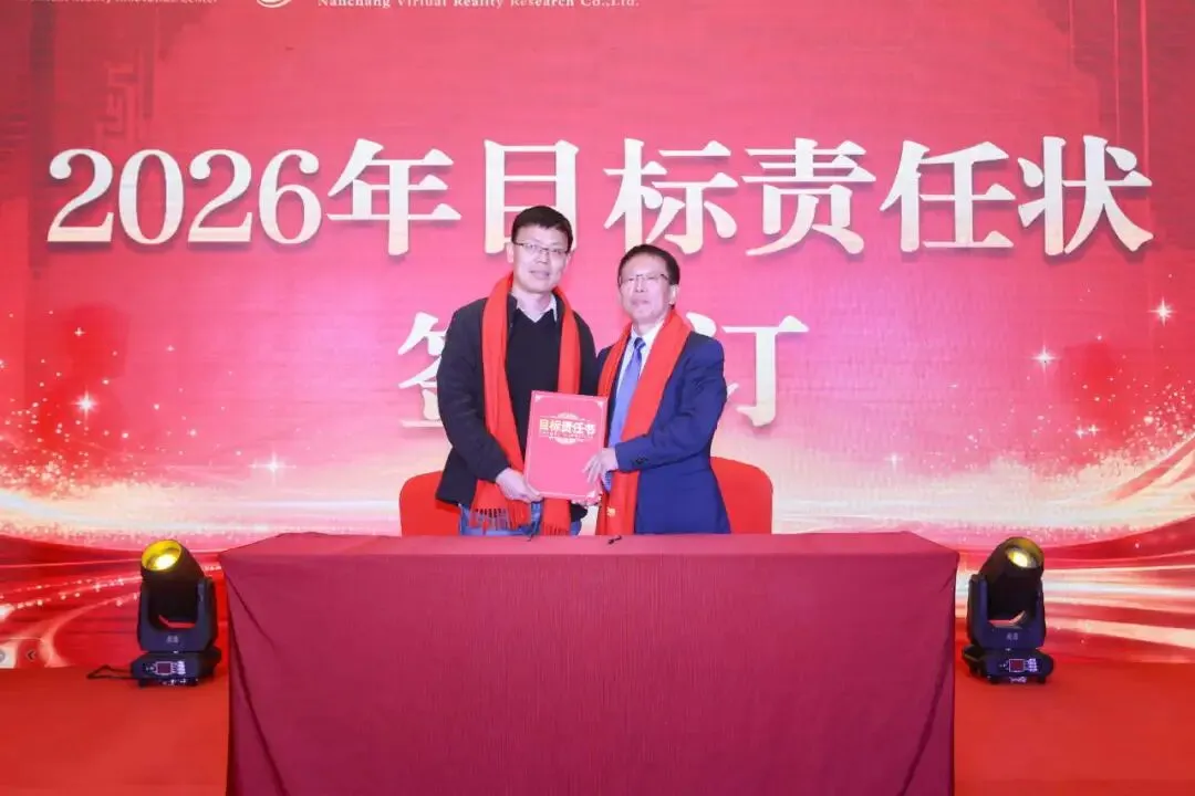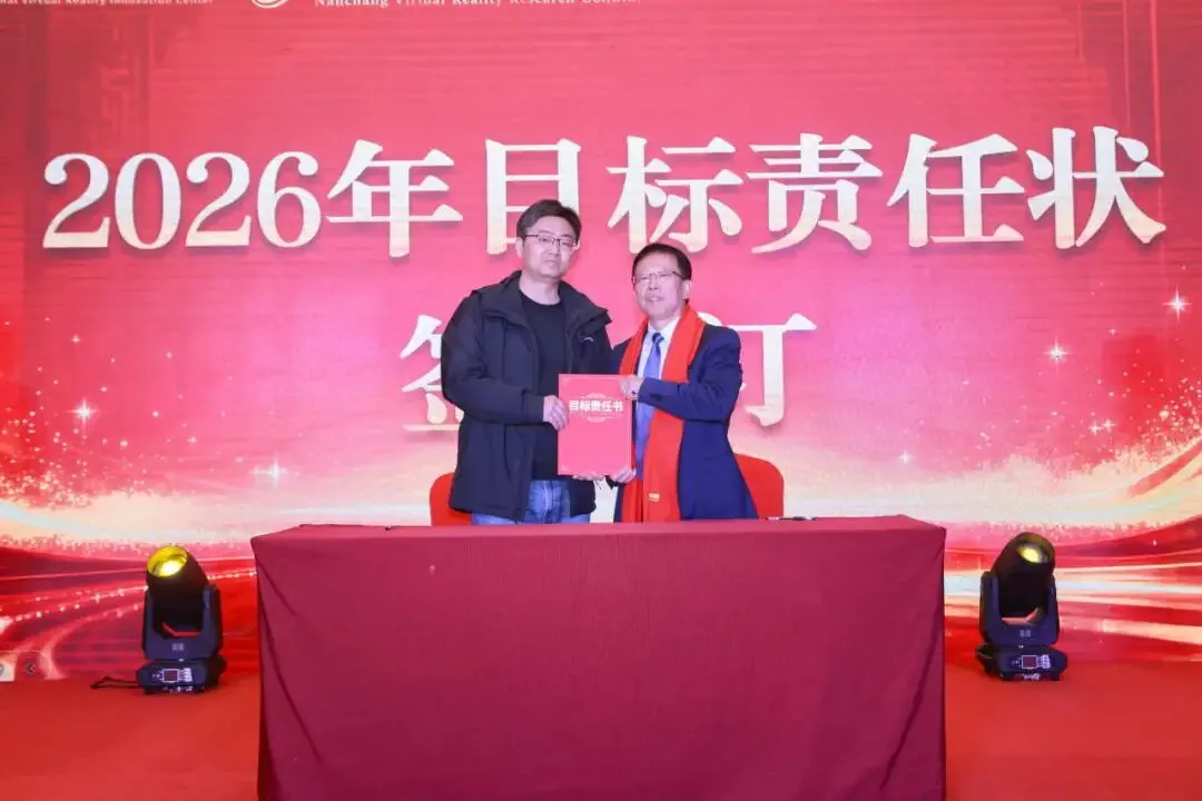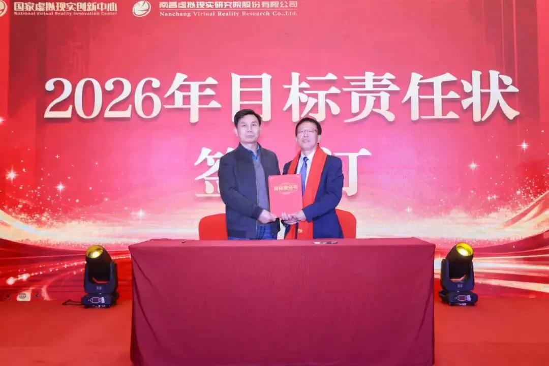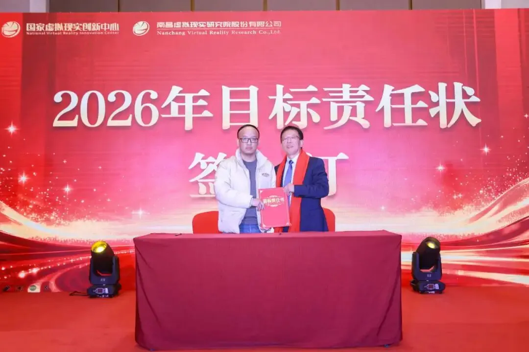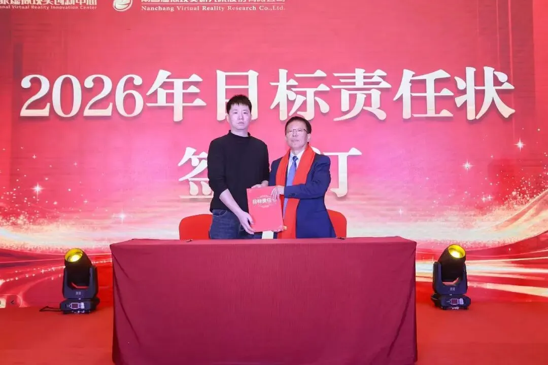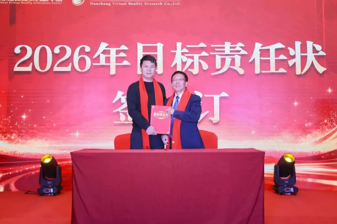 随后,周建国与各部门负责人签订2026年目标责任状,进一步明确了2026年度国创中心及其运营主体南昌虚拟现实研究院的工作目标和责任,为2026年有序开展经营管理工作奠定了良好的基础。