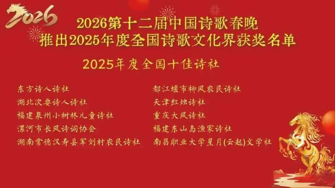 2月9日,2026第十二届中国诗歌春晚总会场在京畿重镇河北廊坊精彩绽放,我校星月(云起)文学社荣获2025年度全国十佳诗社。