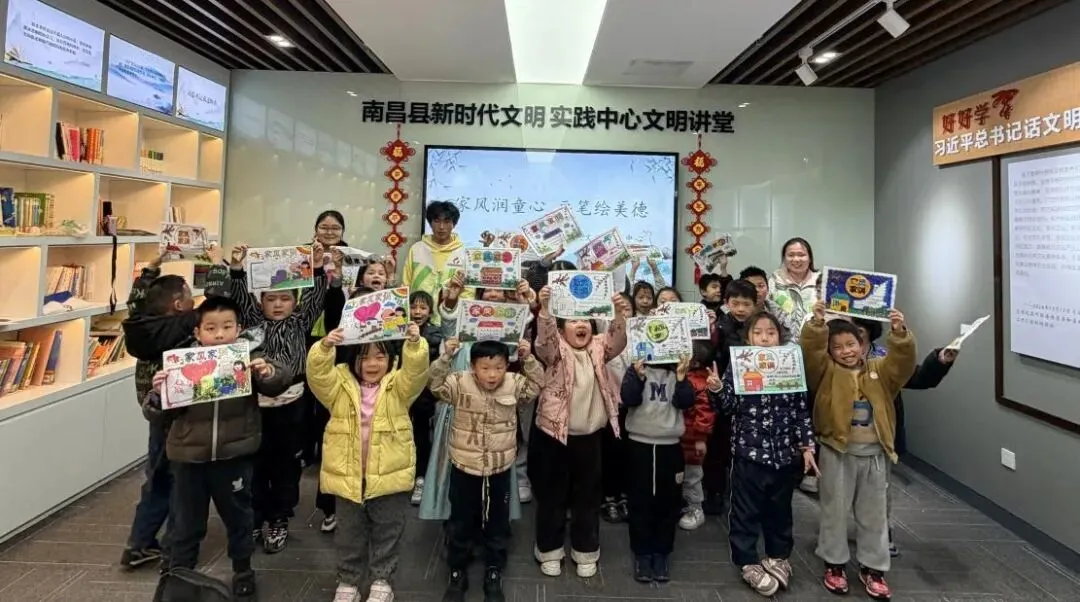 主题绘画环节将活动推向高潮。志愿者为孩子们分发绘画材料,引导大家画出心中的家风美德。孩子们尽情发挥想象,有的勾勒出全家互敬互让的温馨画面,有的写下“诚实守信”“勤俭节约”的家训,每一幅充满童真的作品,都藏着他们对优良家风的喜爱与向往。