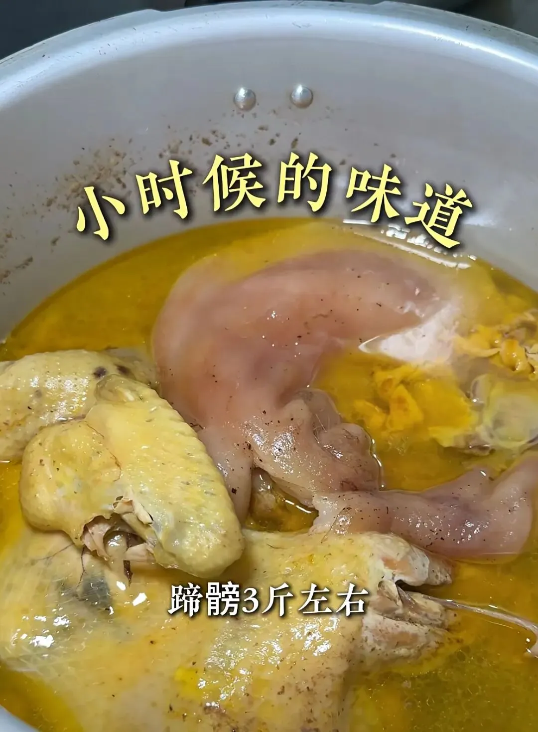 选用3斤左右土鸡与腊蹄同炖,汤汁浓郁不油腻